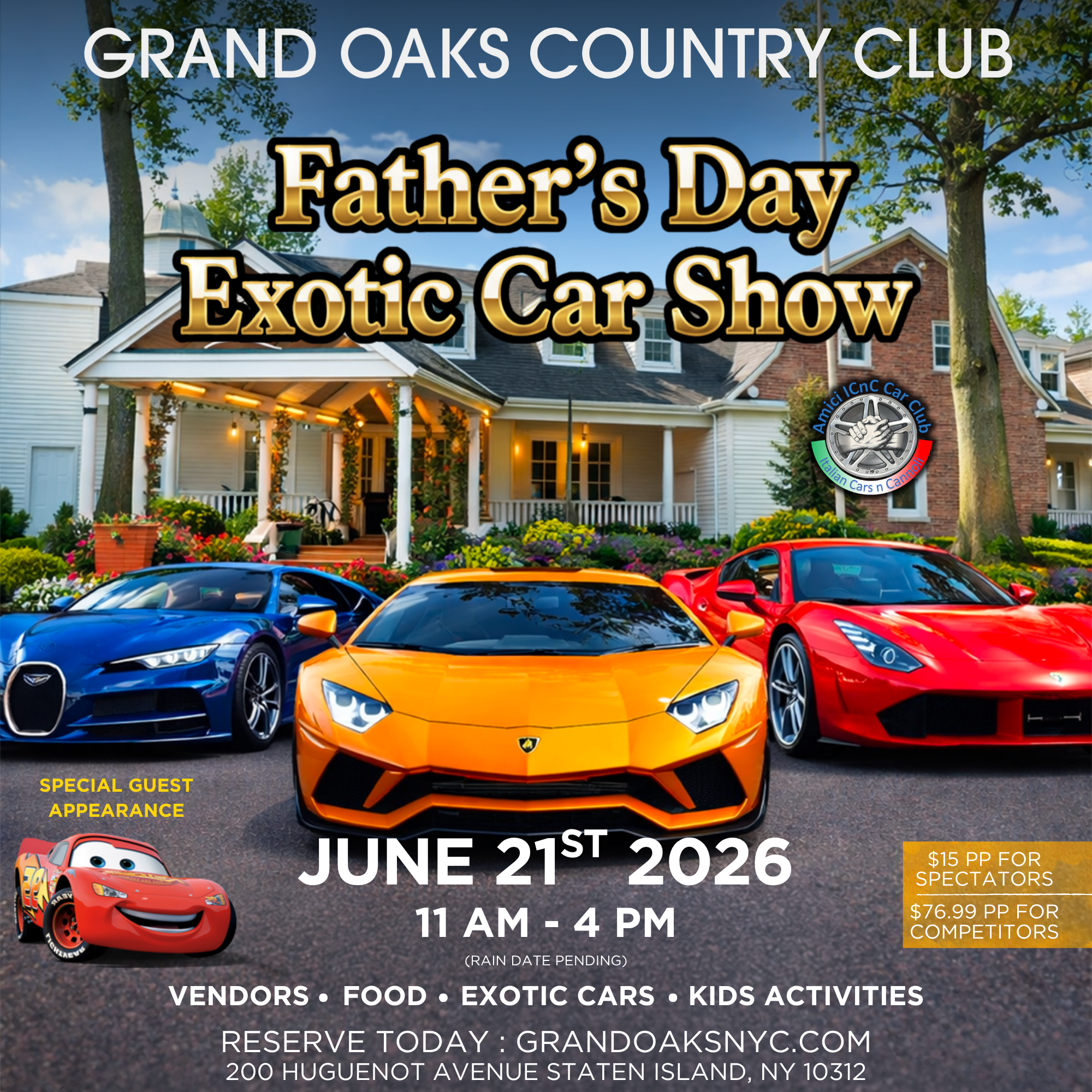 Treat Dad to an unforgettable Exotic Car Show experience for Father's Day. ποΈ Enjoy a curated display of stunning exotic vehicles set against our beautiful country club grounds. Guests will enjoy family-friendly activities π, and a special guest appearance just for the kids. βThis is more than a car show, it’s a Father’s Day celebration where Dad is the main attraction.